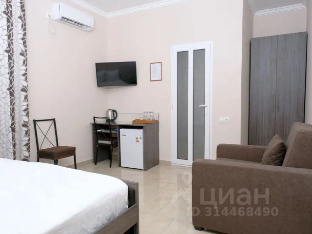 Уютная комната на троих ждёт вас! В комнате мягкие кровати, шкаф для белья, тумбочки, телевизор, кондиционер. Рядом кухня со всеми необходимыми принадлежностями, газовая плита, холодильник, столики на трассе, где можно попить кофе или покушать, душевая и туалет. В шаговой доступности вы увидите знаменитые поющие фонтаны, "ту самую белую шляпу", детский парк аттракционов, аквапарк, набережную, выход на пляж и много всего интересного.