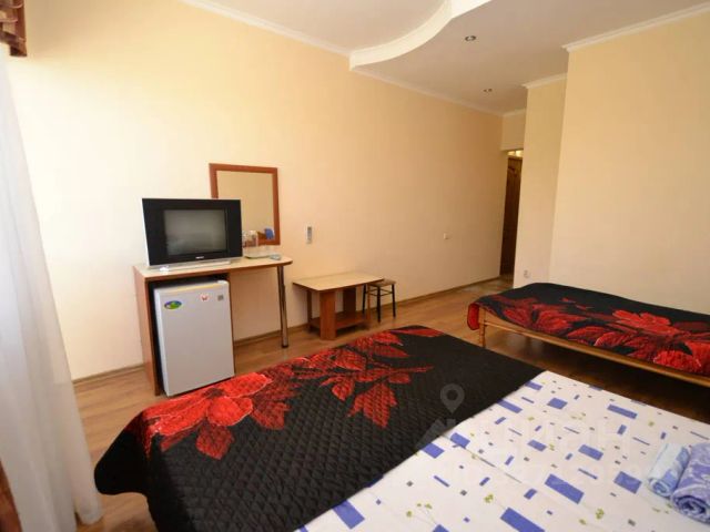 Гостевой дом Соната это современное 4-х этажное здание, расположенное в городе-курорте Анапа, на улице Северной в 700-х метрах от песчаного пляжа. В 14 км расположен аэропорт Анапы, до железнодорожного вокзала 6,5 км, в 40 км Новороссийск и 11 км Витязево. Предлагаются для проживания 2-х, 3-х местные однокомнатные номера Стандарт и 3-х, 4-х местные 3-х комнатные номера Люкс со всеми удобствами: санузел (душ/ванна, туалет, фен), сплит-система, телевизор, холодильник, интернет Wi-Fi, внутренний телефон, есть номера с балконами. В нашем гостевом доме есть большая оборудованная всем необходимым кухня, где вы можете самостоятельно готовить. К Вашим услугам в гостевом доме: авто-парковка под камерами видеонаблюдения, интернет Wi-Fi во всех номерах. Рядом расположены: столовая, почта, салон красоты, Сбербанк, продуктовый рынок (5 мин ходьбы), кафе, дискотеки, аквапарк, парк развлечений (20 мин ходьбы), песчаный пляж (7-10 мин. ходьбы). На 4-м этаже гостевого дома расположена смотровая площадка с летними столиками и стульями. Дорога к морю для вас не будет скучно и однообразно. Два пути есть к золотым пескам Анапы: 1- через живописный зеленый парк, где по пути вы можете встретить пони и других животных. путь плавно переходит в парк аттракционов "Джунгли". Крутые горки, Колесо обозрения и ледовый каток не оставят равнодушным и взрослого и ребенка. 2- второй путь пролегает через "Северный" рынок (вещевой). по пути так же можете встретить множество развлечений таких как Тир, Дом верх дном, Танкодром, И т.д. Множество сувенирных лавок и лавок с продукцией местного производства обязательно не оставят ваших друзей и родственников без подарочка с поездки. Мы рады нашим гостям, и каждый будет чувствовать себя как дома, а мы постараемся обеспечить для вас максимальный комфорт и удобство. Уютный номер, рассчитан на размещение трёх гостей. Для комфортного отдыха, уютный интерьер. Собственный совмещенный санузел, шкафы для хранения одежды, Wi-Fi, телевизор. Сдается комната на неделю на улице Северная в городе Анапа.