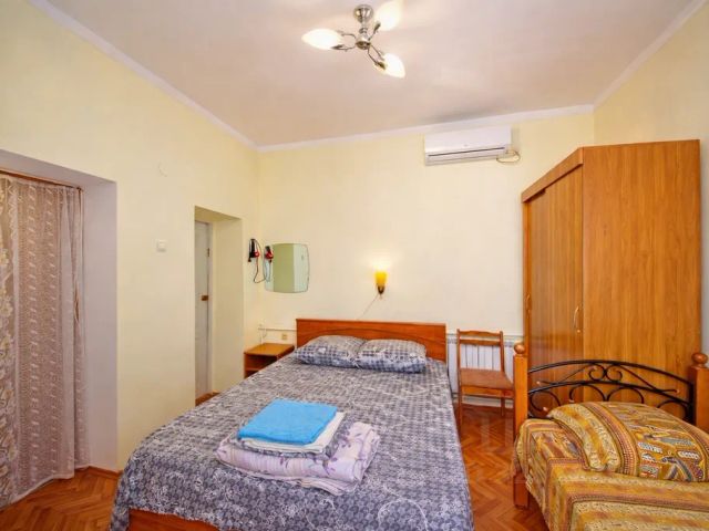 Уютный 2-местный номер в оригинальном дизайнерском решении, состоящий из 2 комнат (гостиная, спальня) с балконом и летней мебелью. Возможно размещение на 3 дополнительных местах. Оснащение гостиной: телевизор с плоским экраном, мини-холодильник, кондиционер, москитная сетка, сейф, телефон. Оснащение спальни: телевизор с плоским экраном, кондиционер, москитная сетка, камин, телефон. Ванные комнаты: банные полотенца, душевая кабина, раковина, туалетные средства, унитаз, фен. Внешняя территория и вид из окон: балкон, вид на город. Интернет/телефония: Wi-Fi. Мебель: диван-кровать, кресло-кровать, зеркала, кресла, пуфики, стулья, прикроватные тумбочки, шкаф для одежды, сервант.