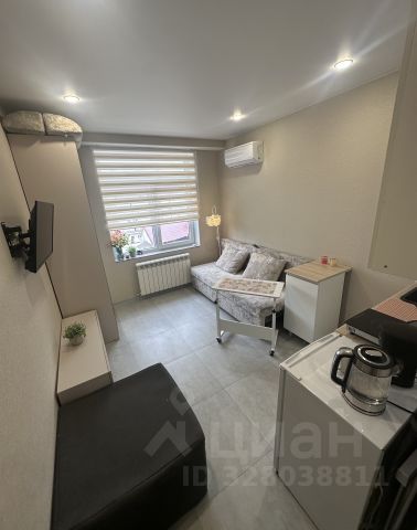 Имеется телевизор, кондиционер, вешалка, зеркало, рабочий стол, холодильник, стулья.