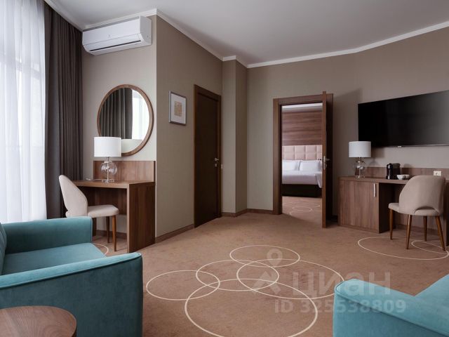 Двухкомнатный номер находится на1 этаже. Впервой комнате две односпальные кровати икресло-кровать, вовторой— односпальная кровать. Санузел вномере.
