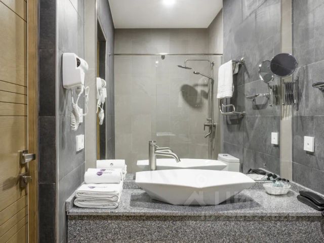 Для бронирования доступны номера нескольких категорий: Делюкс, Люкс, Улучшенный и Стандарт. Комнаты оснащены двуспальными или односпальными кроватями, диванами, телевизорами. Отдельно предусмотрены собственные душевые комнаты, полотенца и постельное белье. Из балконов открывается вид на море и песчаный берег.
