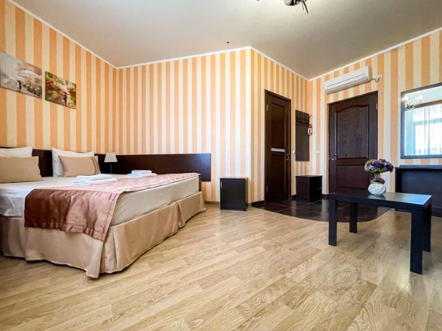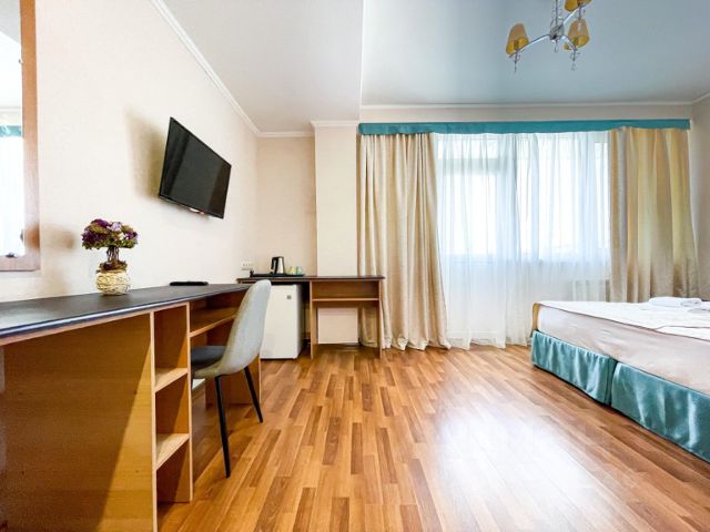 В номере: удобная мебель, телевизор , холодильник, сплит система, шкаф для одежды, сейф, холодильник, санузел с душевой кабиной + ТЕПЛЫЕ ПОЛЫ, отопление в холода ! У нас очень комфортно.