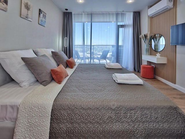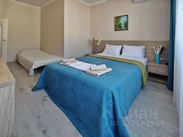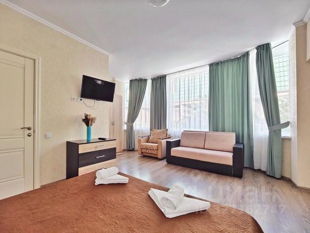 Новые апартаменты в курортном Джемете по типу студии в отдельно стоящем домике на 1 этаже со своим входом и видом на бассейны. На территории комплекса два бассейна, море в 15 минутах ходьбы. До ж/д вокзала 3 минуты Магазины и столовые в пешей доступности Поблизости парки, аквапарк, аттракционы и бары с ресторанами Студия оборудована всем необходимым для комфортного отдыха, а именно: •двухспальная кровать (при необходимости можно разделить её на две односпальные) •оборудованная кухня (плита, холодильник, посуда как для готовки, так и для еды) •стиралка, сушилка, утюг, фен, кондиционер, телевизор, WiFi •личный балкон, оборудованный столиком и стульями, у бассейна личные шизлонги •полный комплект полотенец для каждого гостя, включая пляжных полотенец Комплекс огорожен забором, на территории видеонаблюдение, 2 бесплатные парковки на территории. Возможность дистанционного заселения и выезда. Залог возвращается в день выезда после уборки номера. БРОНИРОВАНИЕ ОТ 3-х ДНЕЙ В наличии второй такой же номер на верхнем этаже этого же здания (вход отдельный для каждого номера) Квартиры на 3 дня на улице Ростовская в городе Анапа.