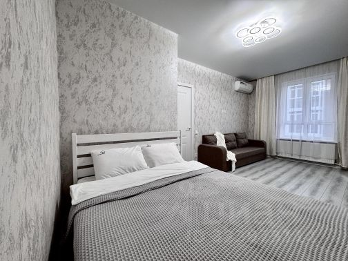 Уютная, просторная и чистая однокомнатная квартира. Большая куня со спальным местом. Есть все необходимое для жизни. Во дворе есть детские площадки,велодорожки,спортивные площадки, школа, скоро сдача детского садика, парковка, остановка в 5 минутах, 15 минут до моря высокий берег. Магазины и аптеки в шаговой доступности.
