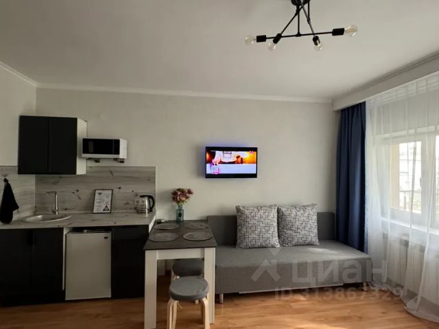 Микроволновая печь, холодильник, газовая плита, электрический чайник, smart-телевизор, Wi-Fi, кондиционер, журнальный столик, фен, утюг, гладильная доска, сушилка для вещей, постельное бельё, полотенца, кухонные принадлежности и средства гигиены.