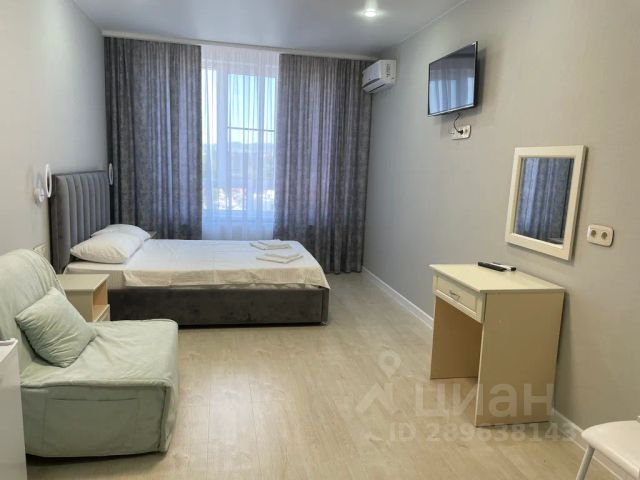 Студия с видом на море !!! Собственник сдает уютную студию в новом доме. С лоджии открывается вид на начало Кавказских гор и на Черное море! В пяти минутах ходьбы-круглосуточный супермаркет с кулинарией и кафе-Табрис!!! Рядом с домом 2 рынка-где всегда можно купить свежие фрукты,ягоды,и конечно же свежевыловленную рыбу. На первом этаже дома есть-аптека,парикмахерская,кондитерская и пивбар. В шаговой доступности-Красное Белое,Пятерочка,Магнит,Перекресток. В 15 минутах от дома шикарный парк Ореховая роща,до моря пляж галька-20 мин.пешком,до центрального пляжа песок-30-40мин. неспешным шагом.Рядом с домом остановка автобуса-на нем можно уехать по всем направлениям. В студии есть все для комфортного проживания,посуда,текстиль,бытовая техника. Два дивана -один раскладывается в двухспальную кровать на втором спокойно разместятся двое взрослых . Можно с собаками за дополнительную оплату-кроме крупных пород! ВАЖНО!!!-Квартира -НЕ СДАЕТСЯ ДЛЯ ПРОВЕДЕНИЯ ВЕЧЕРИНОК И УВЕСЕЛИТЕЛЬНЫХ МЕРОПРИЯТИЙ!!! КУРИТЬ В КВАРТИРЕ-ЗАПРЕЩЕНО!!! При заселении-иметь при себе паспорт!!! Огромная просьба-для вашего удобства- бронировать заранее!!