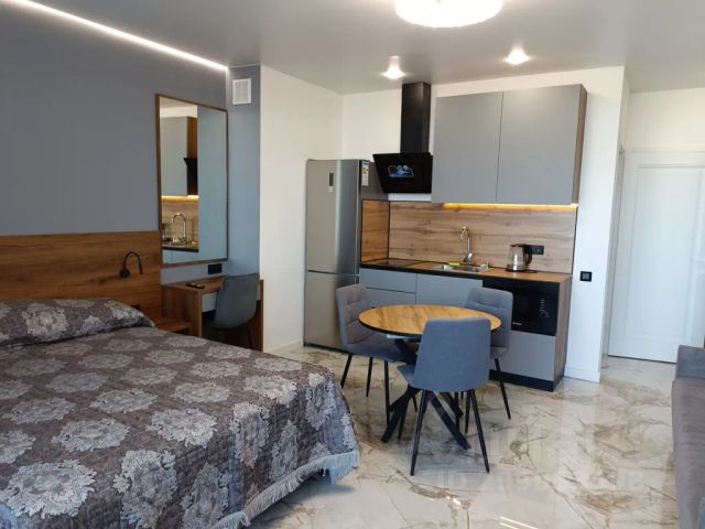 Новые, современные апартаменты с видом на море. 2 мин до пляжа. С развитой инфраструктурой: кафе, столовые, рестораны, пятерочка, перекрёсток, аптека, рынок. В пешей доступности центральные улицы, поющий фонтан, ночные клубы, парк аттракционов и тд. В квартире есть всё необходимое: телевизор, wifi, кондиционер, плита, микроволновка, посудомойка, стиралка, фен, утюг, посуда, полотенца. Бассейн 500р Охраняемая парковка 400р Заезд в 14, выезд в 12 .