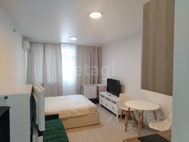 Сдаётся в аренду стильная абсолютно новая квартира-студия площадью 35 кв. м. Высота потолков составляет 2.8 метра, что создаёт ощущение простора. В квартире выполнен современный ремонт в светлых тонах. Квартира разделена на две зоны, зону кухни и спальную зону современной перегородкой. Имеется вся необходимая мебель. Из техники в вашем распоряжении кондиционер, холодильник, телевизор и стиральная машина. Санузел совмещён, в нём установлена душевая кабина. В квартире есть просторная лоджия, где вы можете наслаждаться свежим воздухом. Дом оборудован двумя пассажирскими и одним грузовым лифтом, а также пандусом для удобства передвижения. Для вашего автомобиля предусмотрена наземная парковка, поэтому можно быть уверенным в наличии места для машины. В шаговой доступности находятся школы, детские сады и клиники, поэтому район отлично подходит для семей с детьми. Рядом есть магазины и другие объекты инфраструктуры, что значительно упрощает жизнь. Хорошая транспортная доступность позволяет быстро добраться до любой части города, включая центральный пляж и набережную! Записывайтесь на просмотр и оцените все преимущества этой уютной и современной квартиры. Мы уверены, что вы останетесь довольны!